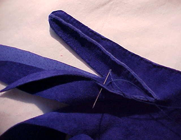 Step 5.  Sew in the forchette between the index and  pointer finger.