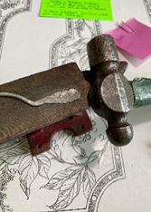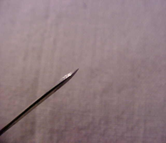 Needle – To make stitches in the leather to sew the pieces of glove together, you need a needle and a thread. The Romans introduced needle making into Britain and the skill was learned and carried on centuries after. In the 16th century the finer needles were made by German and Italian craftsmen and were imported into England by the Hanseatic League until the Importation Act stopped the trade. Elias Knause and Christopher Kings were German needle makers in England. Kings lived in Whitechapel and Knause on the London Bridge. They established themselves in London during the middle of the 16th century (Rollins, 6) and provided the special needles for glovers; the triangular-pointed needles. They provided needles for the many crafts; seamstress, tailor, tapestry worker, sailmaker, tentmaker and of course glover/tanyer. The process of making iron needles is a very long and special process.